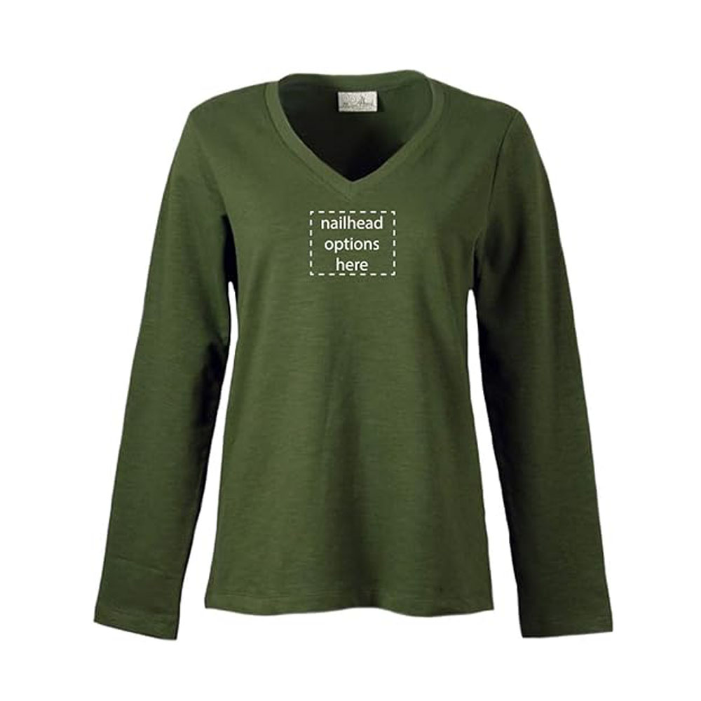Akwa Made in USA Women’s Slub Terry V-Neck Long Sleeve