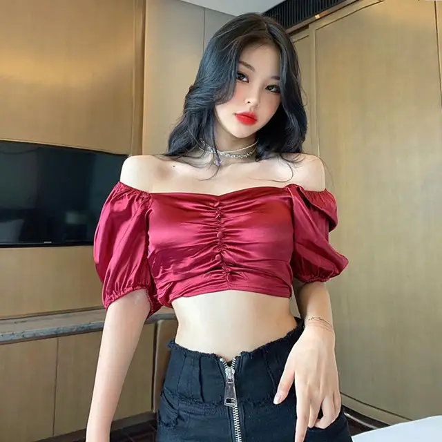 Women Blouse Summer Vintage V Neck Solid Color Backless Puff Sleeves Crop Ladies Top shirt Woman Blouse And Top